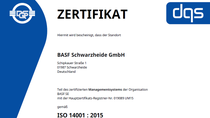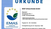 Seit 1996 lässt sich die BASF Schwarzheide GmbH nach EMAS, dem weltweit anspruchsvollsten System für nachhaltiges Umweltmanagement, prüfen und zertifizieren. Durch unsere Teilnahme an EMAS bekommen wir von externer Stelle wertvolle Rückmeldungen, um unser Umweltmanagement kontinuierlich zu verbessern.